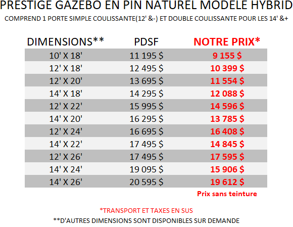 PRESTIGE GAZEBO EN PIN NATUREL OU PEINT